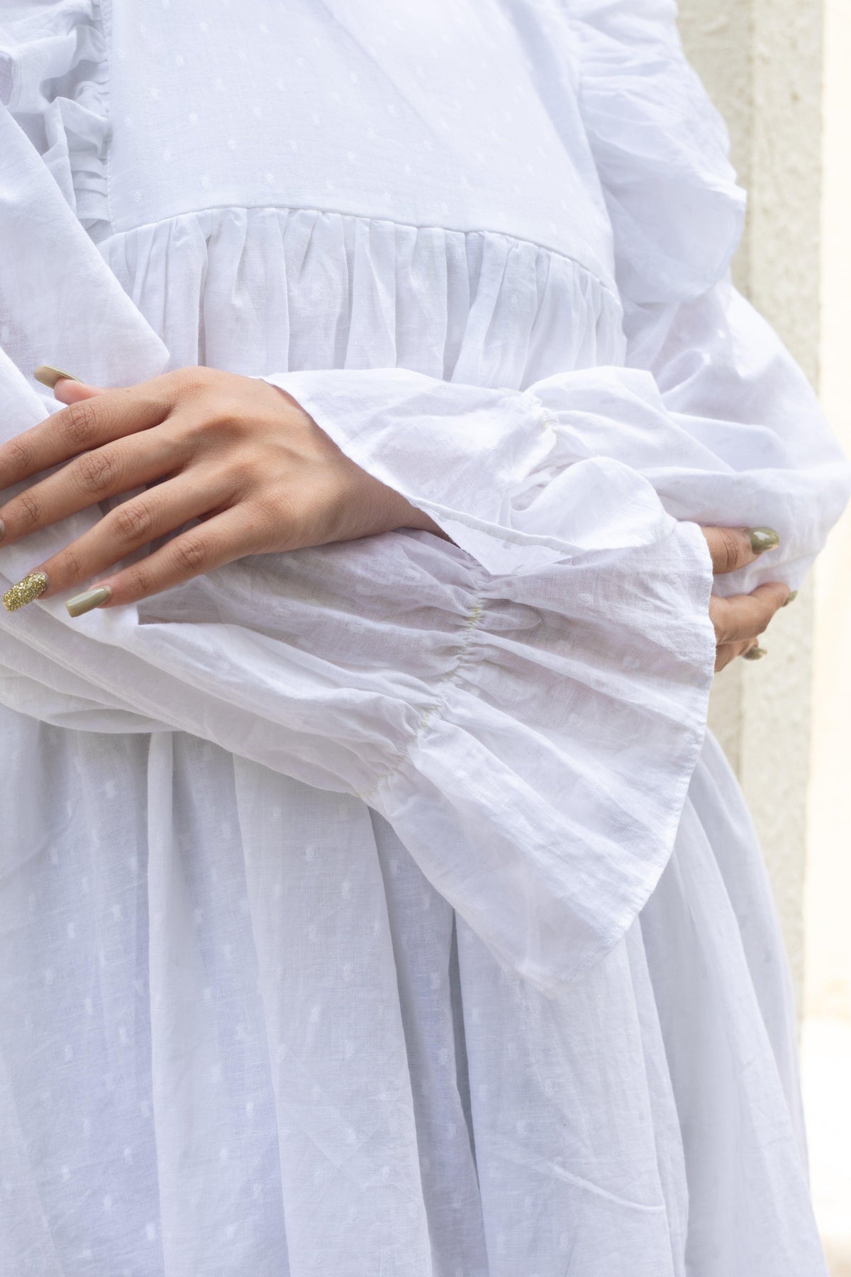 The GLADIOLUS DRESS features a block printed accent yoke, crafted in linen, which compliments the fall of the fabric. This top is an easy go to wear puffed sleeve top with tuck details.