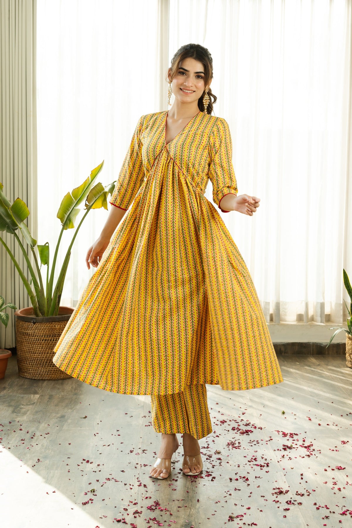 IKSHA COTTON HAND BLOCK PRINTED KURTA SET WITH RED DUPATTA - Sarnya